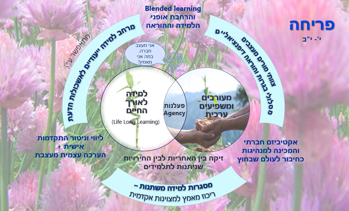 בעולם הזה, הנשען על מיומנויות הלמידה לאורך החיים והוויסות העצמי שאנו מטפחים בתלמידים לאורך כל שנות הלימוד במתווה העדכני, אנו יכולים לעצב את מרחב הפריחה ככזה שיש בו יותר חירויות בחירה מתוך מחוייבות ואחריות אישית.