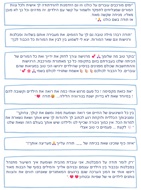 תודה לכולכם, ההורים, המורות והמורים, הגננות והגננים, עובדות ועובדי המנהל על השותפות והאחריות לילדינו היקרים.