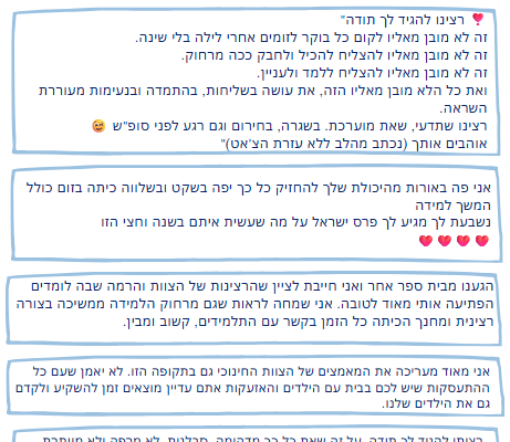 דווקא עכשיו מתחדדת ההבנה שהחינוך האמיתי מתקיים מעבר ללוח ולמערכת, הוא מתקיים במחויבות לתוכנית הלימודים, אבל בעיקר באחריות לתלמידים, בדאגה לשלומם, למצבם הריגשי והחברתי, בהקשבה, בתחושת השייכות ובדוגמה האישית.
